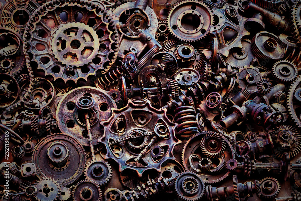 Steampunk Background Machine Parts Large Gears And Chains From Machines And Tractors Stock Photo Adobe Stock